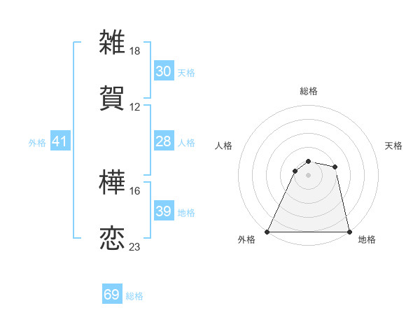 雑賀 樺恋さんの総格は69画の1点!