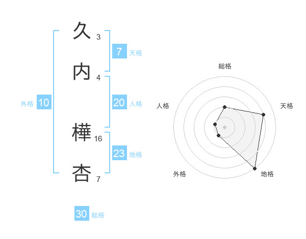 久内 樺杏さんの総格は30画の2点!