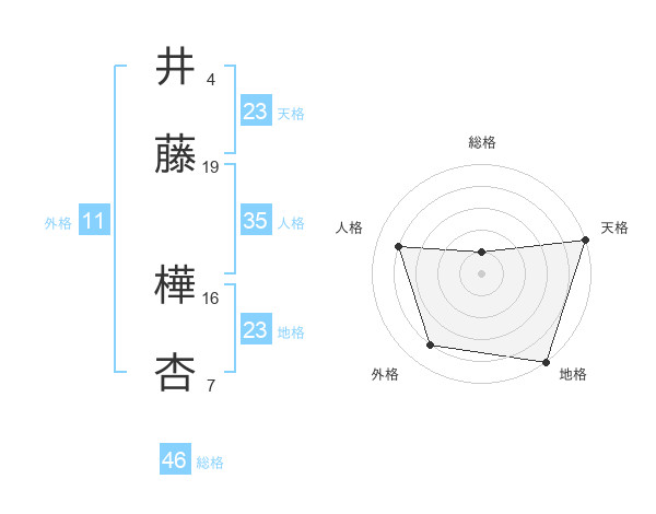 井藤 樺杏さんの天格は23画の5点!