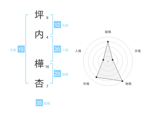 坪内 樺杏さんの総格は35画の4点!