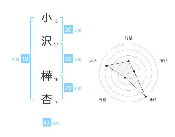 小沢 樺杏さんの総格は43画の2点!