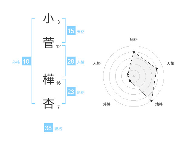 小菅 樺杏さんの総格は38画の4点!