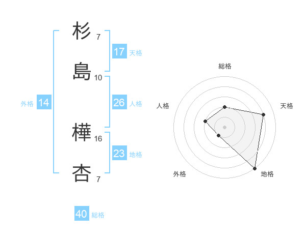 杉島 樺杏さんの総格は40画の2点!