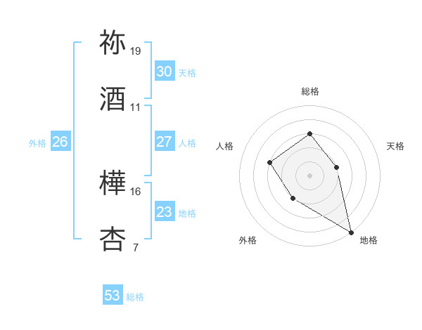 祢酒 樺杏さんの総格は53画の3点!