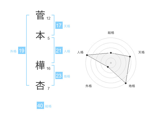 菅本 樺杏さんの天格は17画の4点!