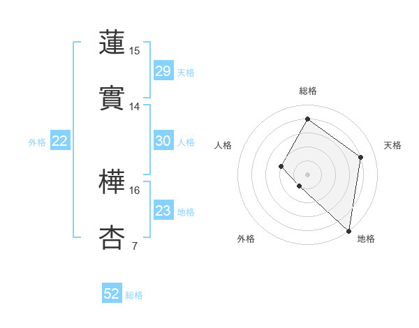 蓮實 樺杏さんを姓名の画数から五運を鑑定