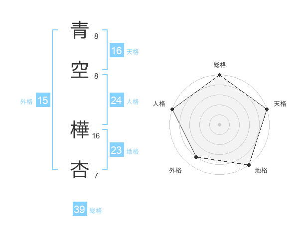 青空 樺杏さんを姓名の画数から五運を鑑定