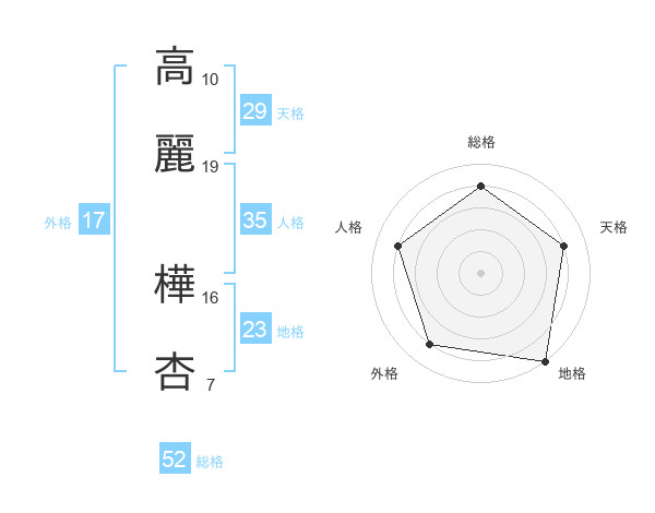 高麗 樺杏さんの総格は52画の4点!