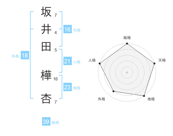 坂井田 樺杏さんを姓名の画数から五運を鑑定