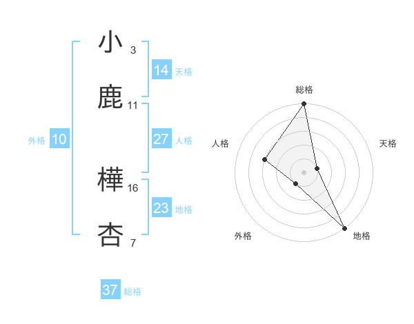小鹿 樺杏さんの総格は37画の5点!