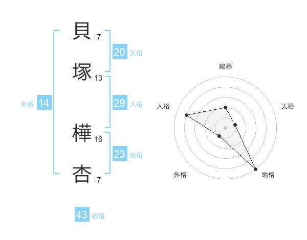 貝塚 樺杏さんを姓名の画数から五運を鑑定