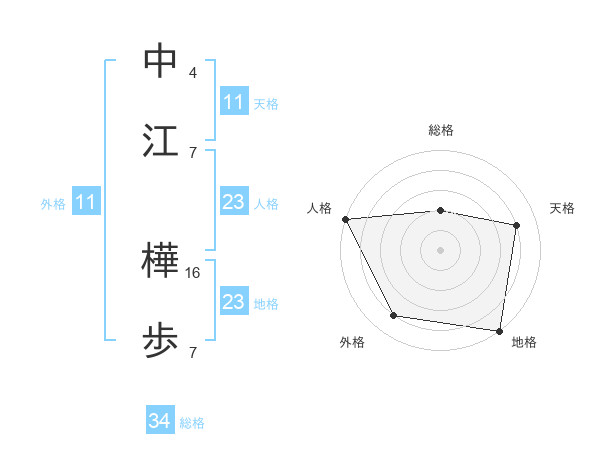中江 樺歩さんを姓名の画数から五運を鑑定