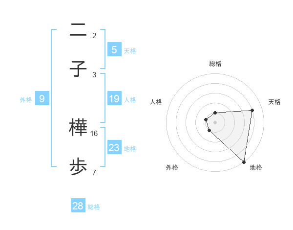 二子 樺歩さんを姓名の画数から五運を鑑定
