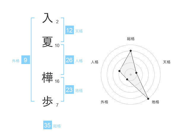 入夏 樺歩さんを姓名の画数から五運を鑑定