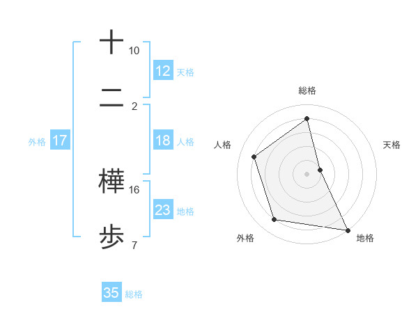 十二 樺歩さんの総格は35画の4点!
