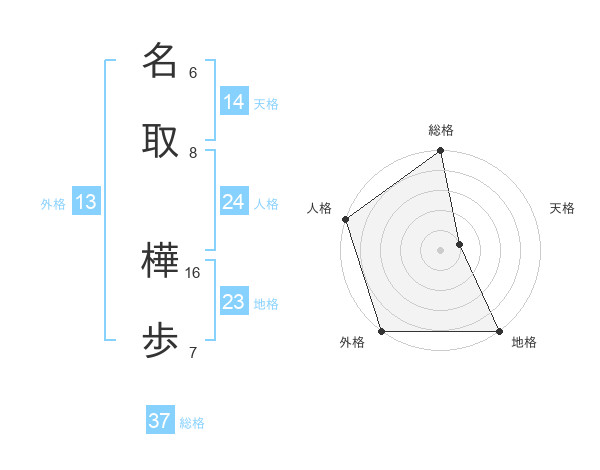 名取 樺歩さんを姓名の画数から五運を鑑定