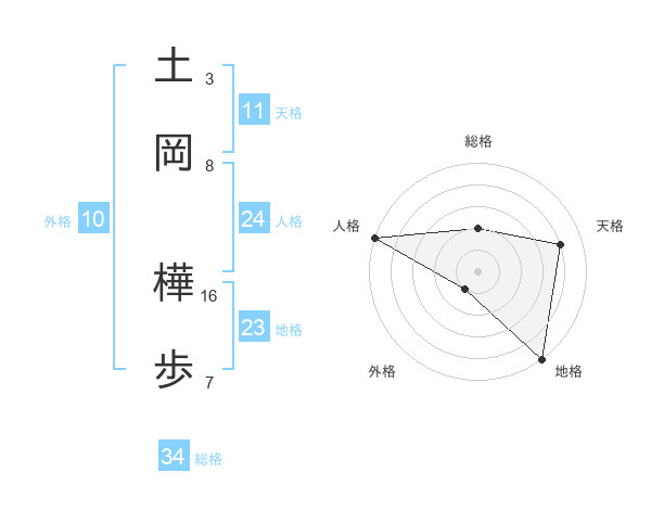 土岡 樺歩さんの総格は34画の2点!