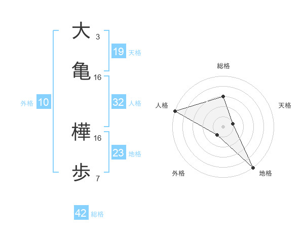 大亀 樺歩さんを姓名の画数から五運を鑑定