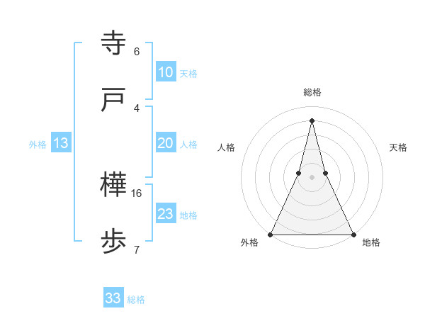 寺戸 樺歩さんの総格は33画の4点!