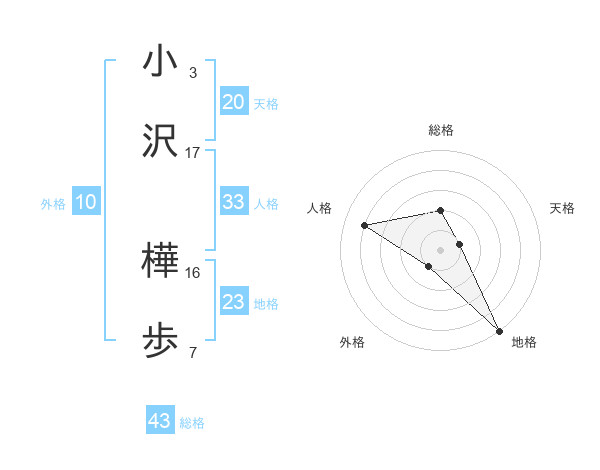小沢 樺歩さんを姓名の画数から五運を鑑定