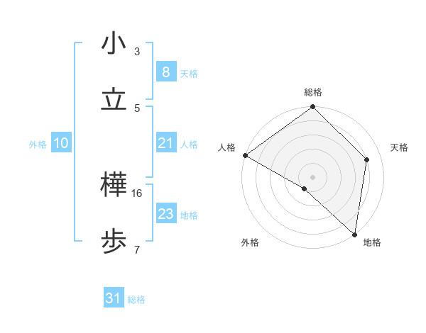 小立 樺歩さんの総格は31画の5点!