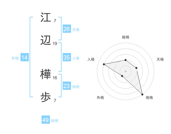 江辺 樺歩さんの総格は49画の2点!