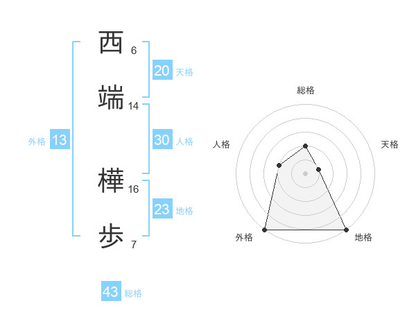 西端 樺歩さんの総格は43画の2点!