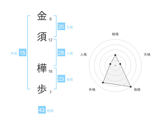 金須 樺歩さんの総格は43画の2点!
