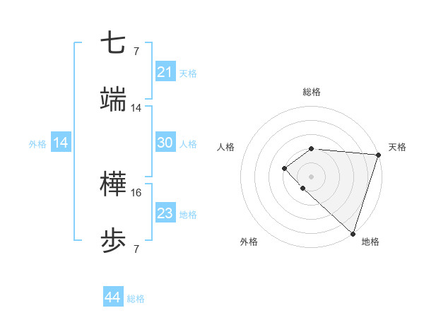 七端 樺歩さんを姓名の画数から五運を鑑定