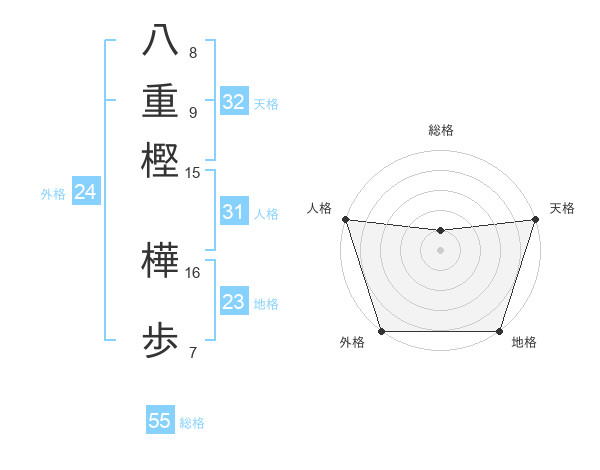 八重樫 樺歩さんの総格は55画の1点!