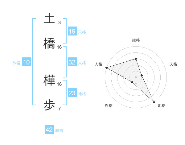土橋 樺歩さんを姓名の画数から五運を鑑定
