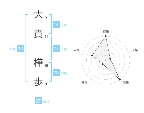 大貫 樺歩さんの総格は37画の5点!