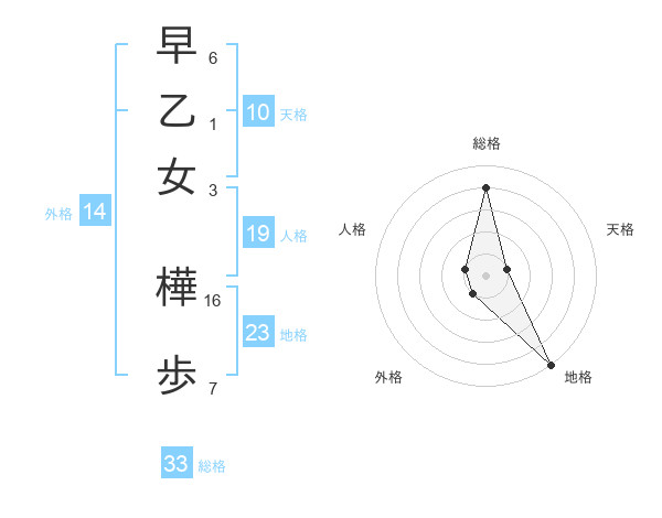 早乙女 樺歩さんの総格は33画の4点!
