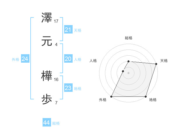 澤元 樺歩さんを姓名の画数から五運を鑑定