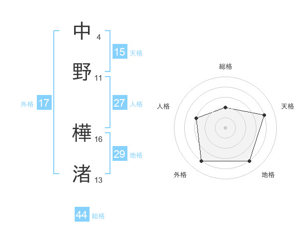中野 樺渚さんを姓名の画数から五運を鑑定