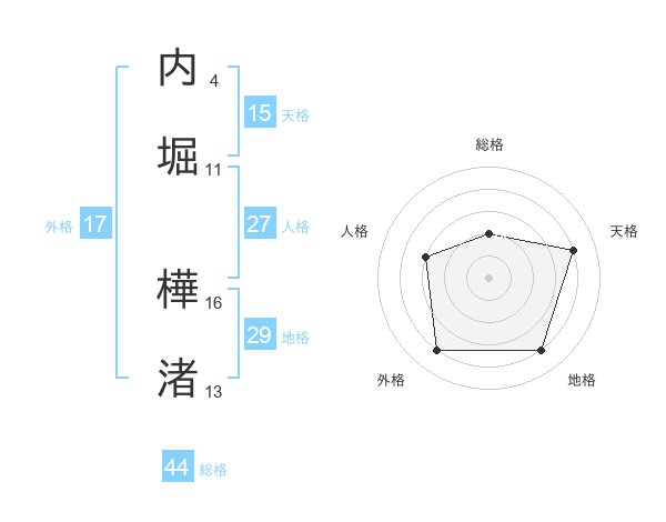 内堀 樺渚さんを姓名の画数から五運を鑑定