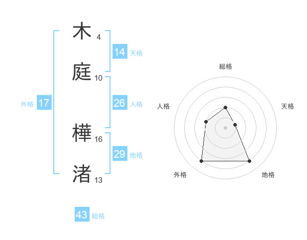 木庭 樺渚さんの外格は17画の4点!