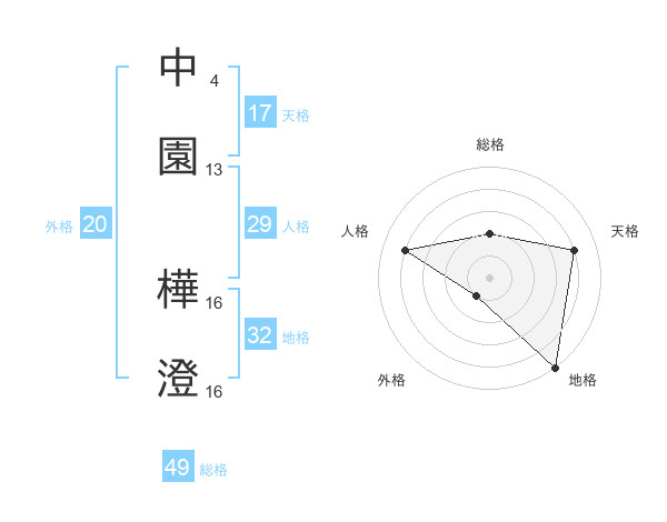 中園 樺澄さんの天格は17画の4点!