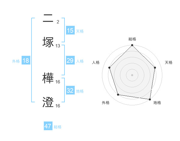 二塚 樺澄さんの総格は47画の5点!