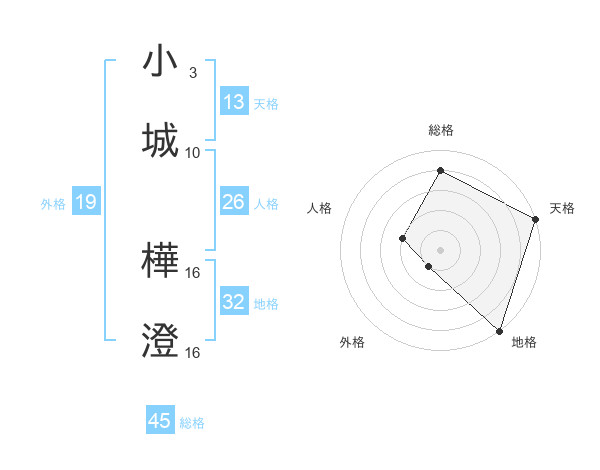 小城 樺澄さんの天格は13画の5点!