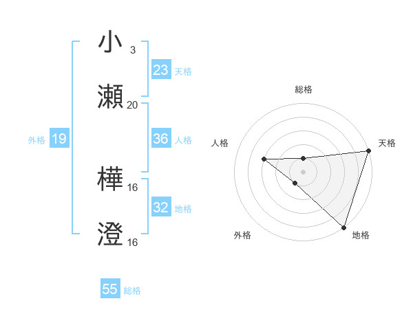小瀬 樺澄さんの天格は23画の5点!