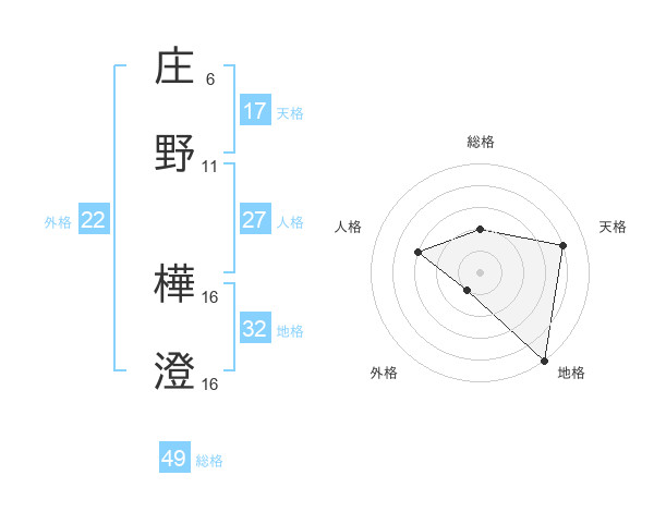 庄野 樺澄さんの天格は17画の4点!