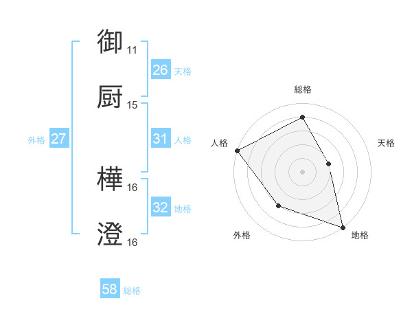 御厨 樺澄さんの総格は58画の4点!