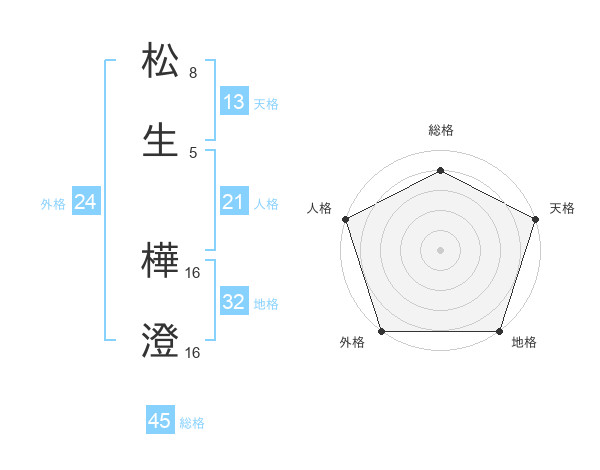 松生 樺澄さんの天格は13画の5点!