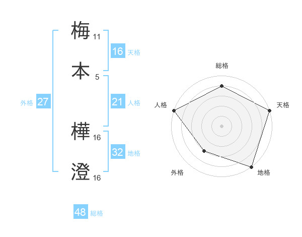 梅本 樺澄さんを姓名の画数から五運を鑑定