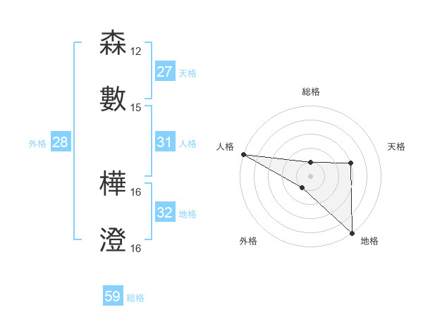森數 樺澄さんの総格は59画の1点!
