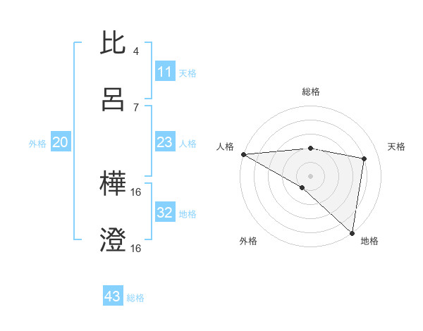 比呂 樺澄さんの天格は11画の4点!