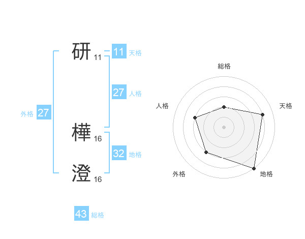 研 樺澄さんの外格は27画の3点!