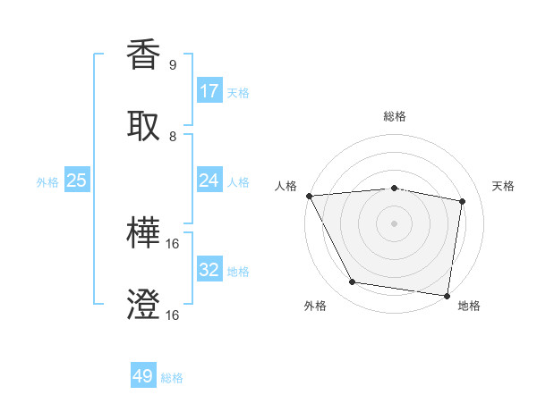 香取 樺澄さんの天格は17画の4点!