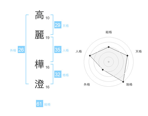 高麗 樺澄さんを姓名の画数から五運を鑑定